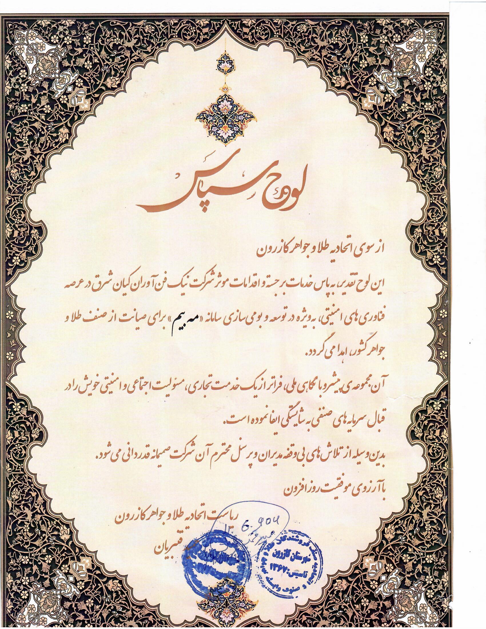 تقدیر نامه های مه بیم
